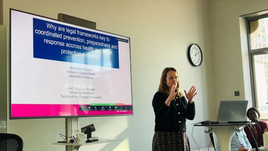 Prof. Stephanie Dagron from the Global Health Research Institute of UNIGE delivers presentation