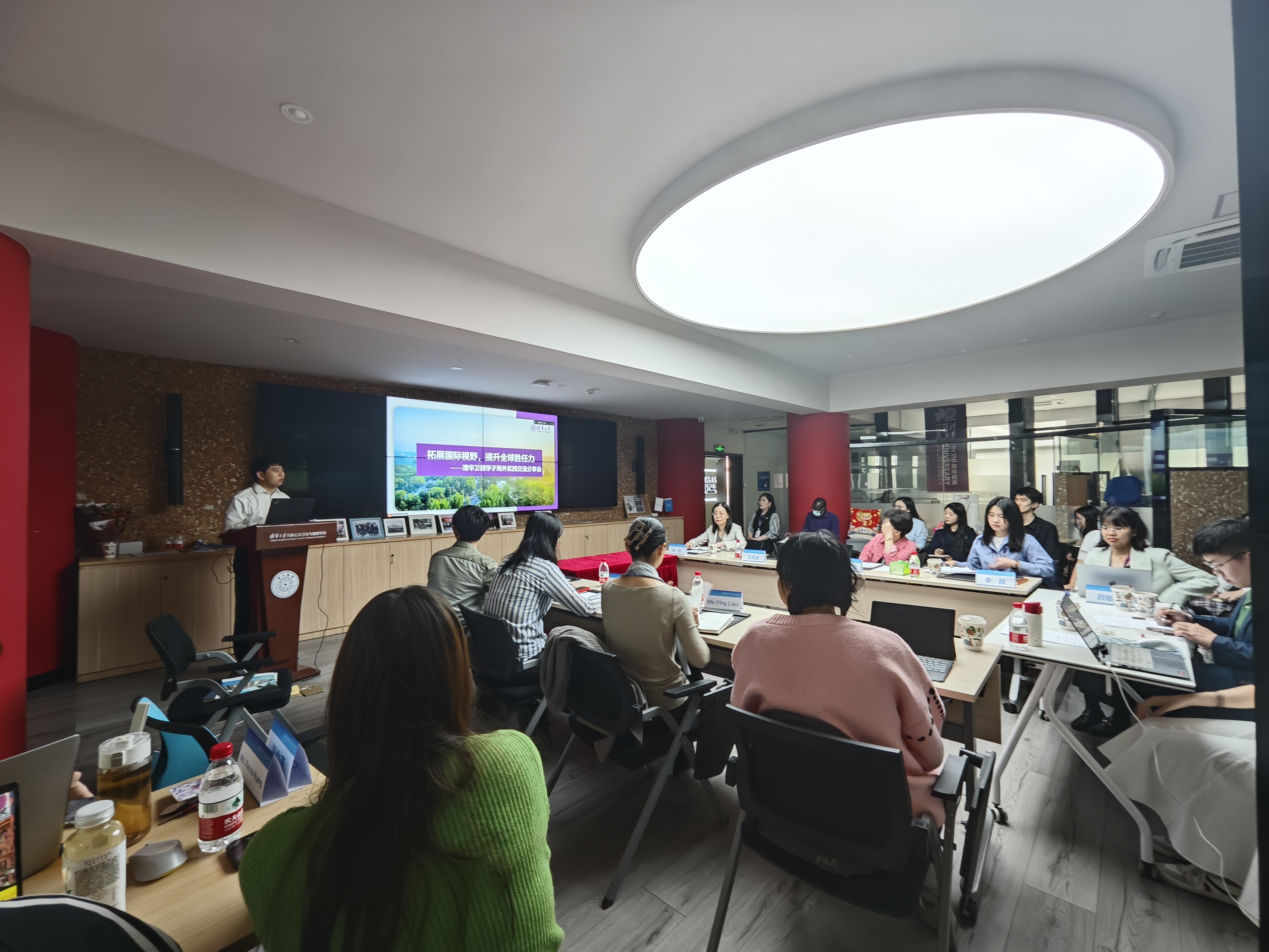 The VSPH Student Overseas Practice Exchange and Sharing Event, with the theme of "expanding international perspectives and enhancing global competence," was held on April 21st. Among the attendees were Director LIAO Ying and Deputy Director HUANG Cheng from the Center for Global Competence Development at Tsinghua University, alongside VSPH Dean Margaret Chan, Vice Dean WANG Kaibo, Assistant Dean and Administrative Office Director YIN Qi, Associate Professor TANG Kun, as well as VSPH staff and student representatives, totaling over thirty participants. The event was hosted by XU Ying, a member of the Tsinghua Student Public Health Association.