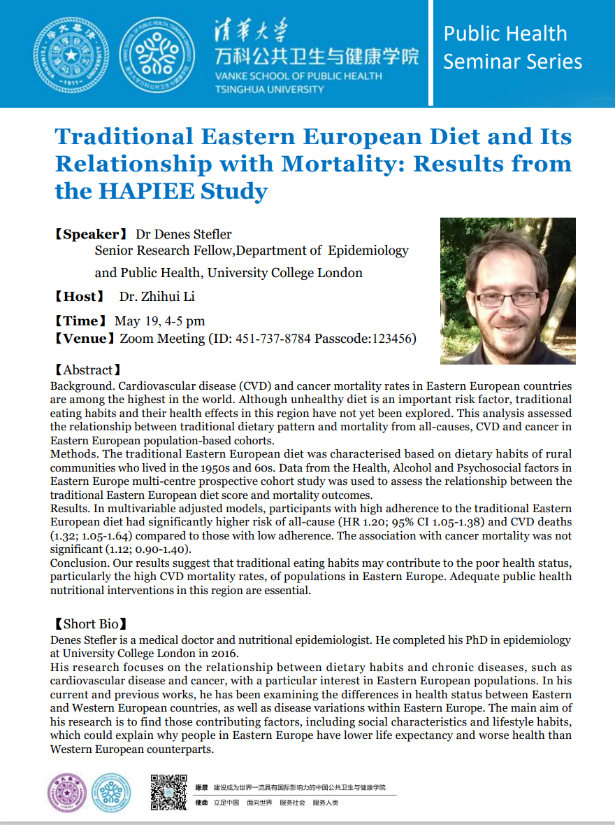 【Public Health Seminar Series】Traditional Eastern European Diet and Its Relationship with Mortality: Results from the HAPIEE Study