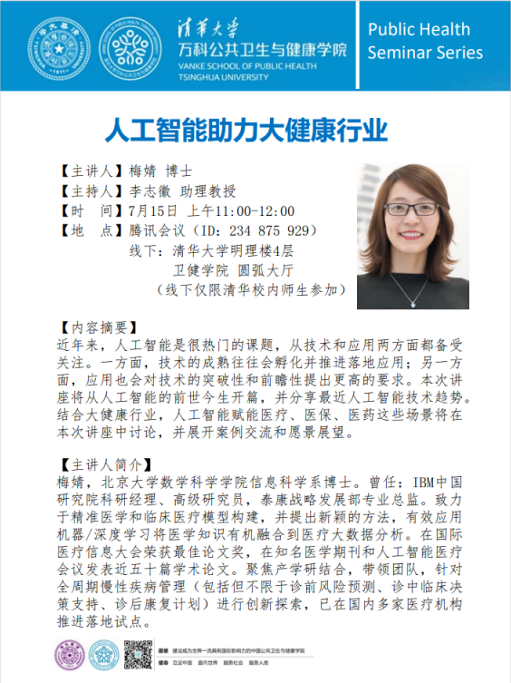 【清华公共卫生与健康系列讲座】梅婧:人工智能助力大健康行业