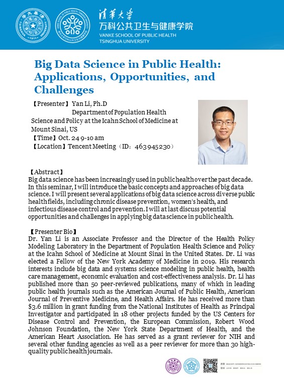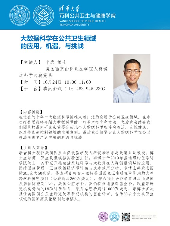 【清华公共卫生与健康系列讲座】大数据科学在公共卫生领域的应用、机遇与挑战