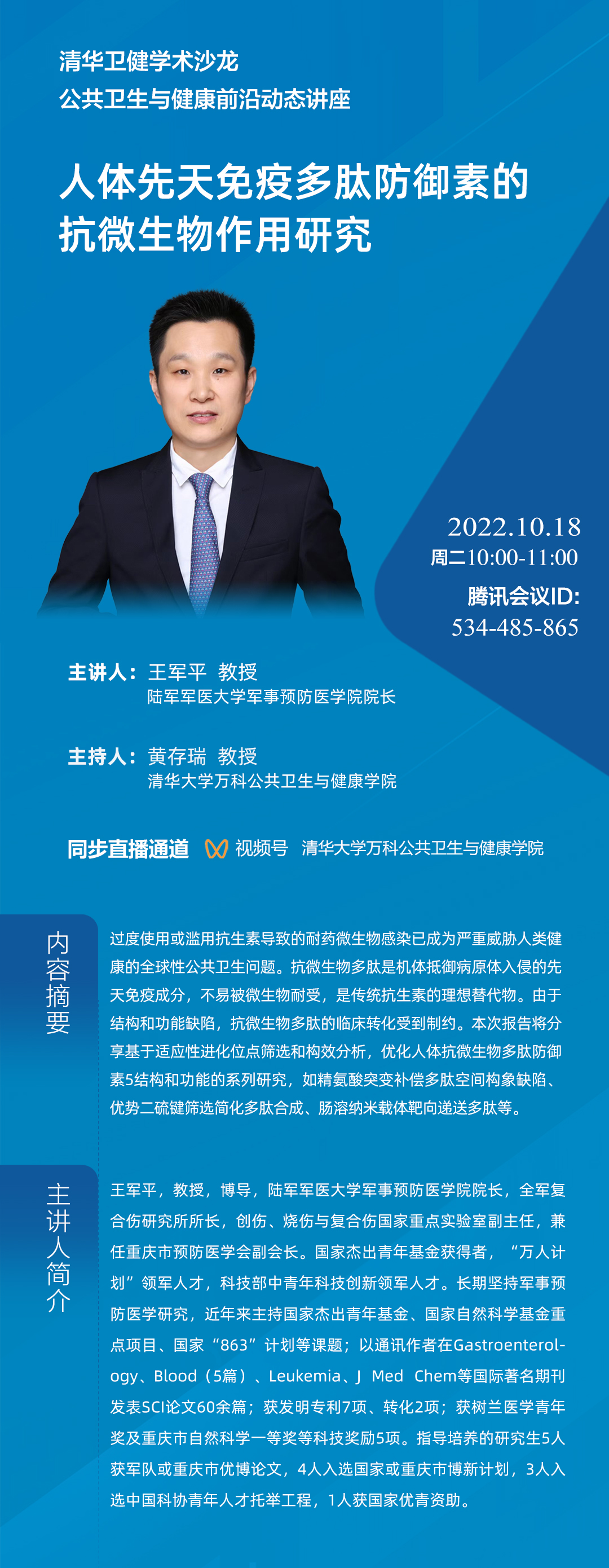 【前沿动态讲座】王军平:人体先天免疫多肽防御素的抗微生物作用研究