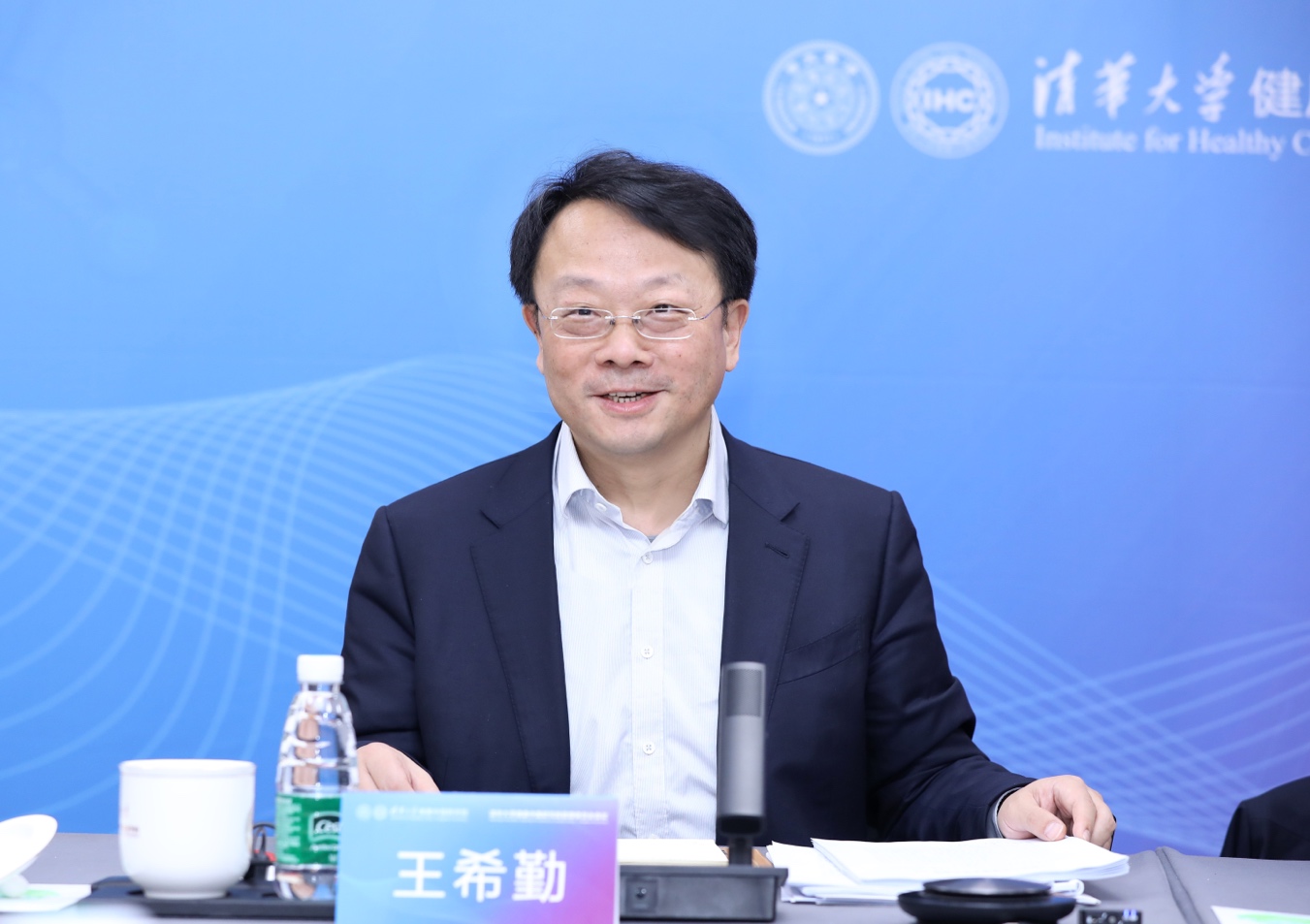 清华大学校长、研究院管委会主任王希勤主持会议,国家卫生健康委规划发展与信息化司司长毛群安、环球体育官网