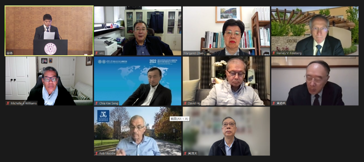 院长邬堂春,清华大学文科资深教授、苏世民书院院长薛澜,国际学术顾问委员会外方主席、戈登和贝蒂摩尔基金会主席哈维·芬伯格,哈佛大学陈曾熙公共卫生环球体育