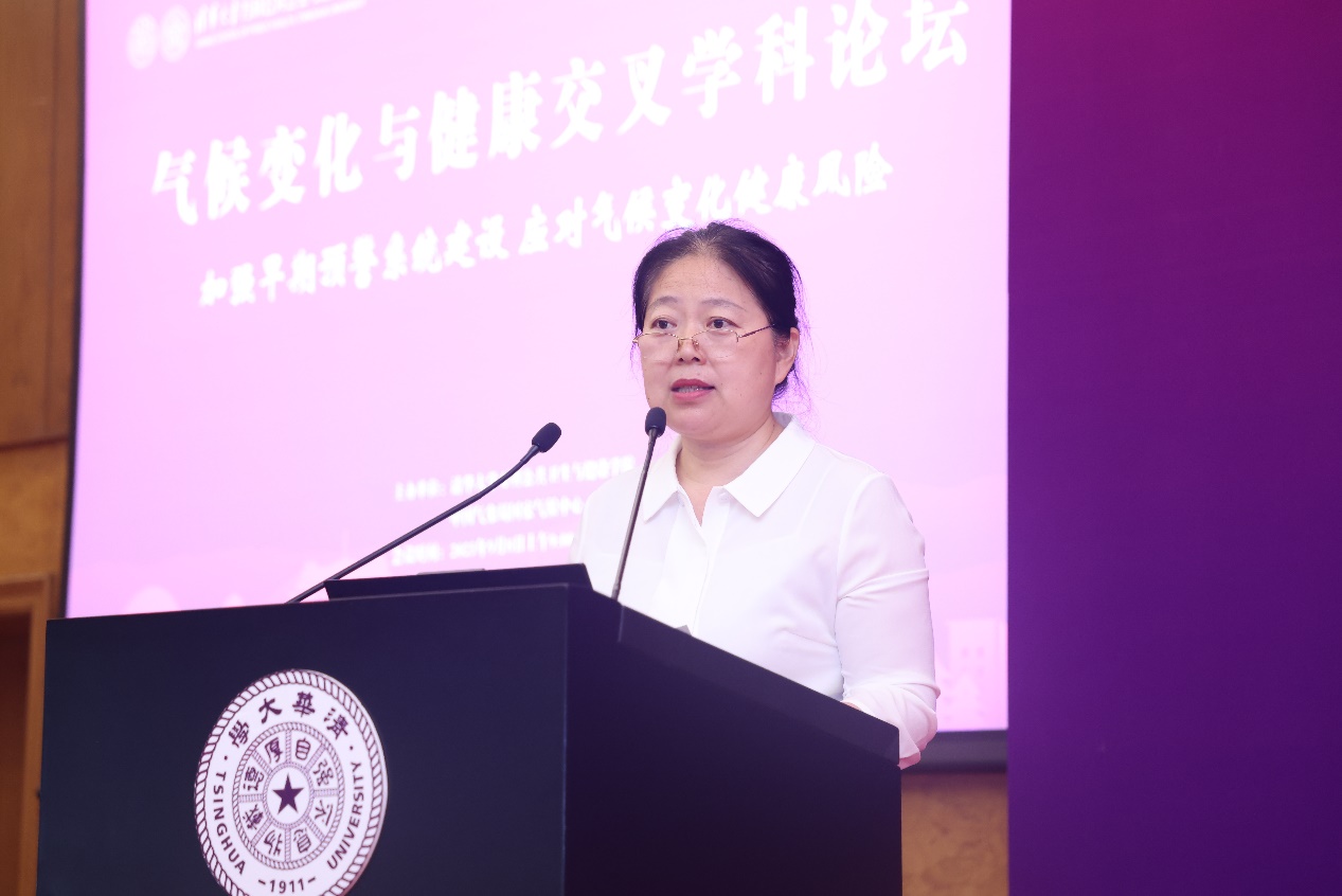 )与中国气象局国家气候中心联合举办的第二届“气候变化与健康交叉学科论坛”在清华大学中央主楼接待厅顺利召开,本届论坛主题为“加强早期预警系统建设,应对气候变化风险”。来自国家疾控局、生态环境部、清华大学、国家气候中心、兰州大学、中科院大气物理研究所、科技部21世纪中心等单位的相关领导与专家出席了本届论坛。
