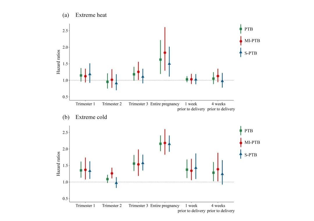 孕期暴露于极端高温或极端低温是否会增加早产的发生风险,且高温或低温的效应是否存在差异?极端温度造成的早产风险是否会因为其临床类型的不同而存在明显差异,并且随着分娩胎龄的不同而变化?该风险又呈现什么样的区域分异规律,主要影响因素有哪些?