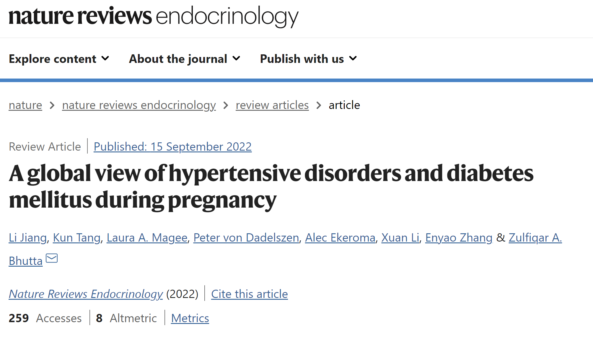 Jiang, L., Tang, K., Magee, L.A. et al. A global view of hypertensive disorders and diabetes mellitus during pregnancy. Nat Rev Endocrinol (2022). //doi.org/10.1038/s41574-022-00734-y