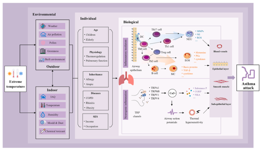 Asthma triggered by extreme temperatures: From epidemiological evidence to biological plausibility.