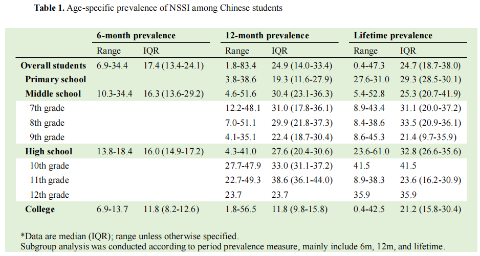 第一部分 中国人群的NSSI流行率和方法