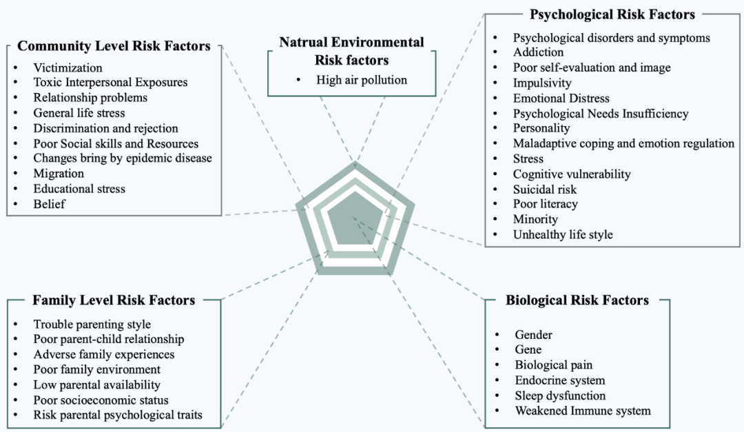 Figure 5. The risk factors of NSSI from the biopsychosocial-ecological framework