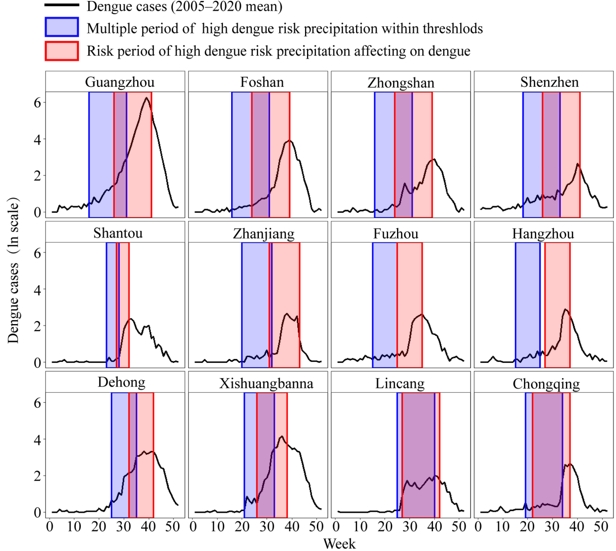 气候变化正在通过影响蚊虫的生命活动和地理分布,不断加速蚊媒传染病登革热的传播和扩散。降雨可为蚊虫提供孳生地从而使蚊子密度增加,是影响登革热传播最重要的气象因素之一。然而,降雨的分布形态较为复杂,在中国的不同地区可呈现为季节性的分散降雨,也会时而发生高度集中的强降雨。在当前全球变暖背景下,这些形态各异的降雨模式可能还会发生更多变化,因而探索复杂降雨模式对媒介传染病的影响尤为重要。