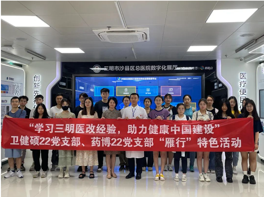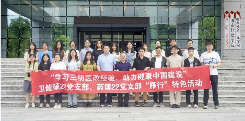 “雁行”特色活动在三明市委党校举办。本次活动的主题是“学习三明医改经验,助力健康中国建设”。卫健硕22党支部、药博22党支部共计23人参加了本次实践活动。