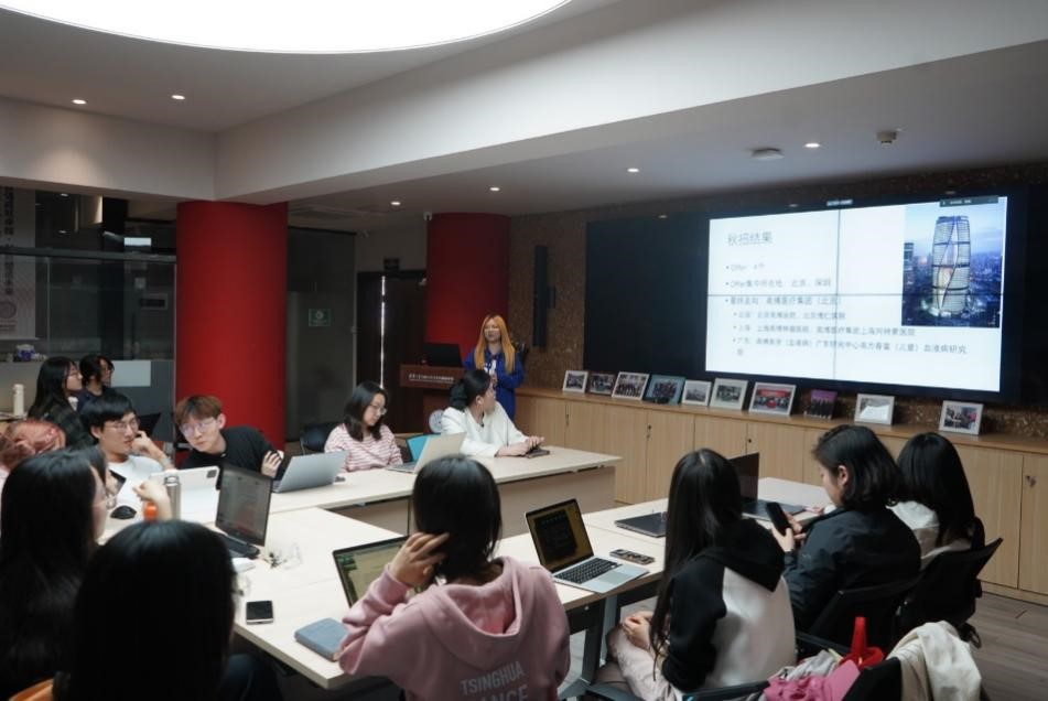 已获得医院工作机会的唐翰兴向同学们分享了她的秋季招聘历程。她详细地描述了求职的时间线,从简历制作到职位申请,再到最终签约的每一步,让在座的同学受益匪浅。她指出,实习经历和面试表现对于求职成功至关重要,并分享了她面试准备和应答技巧的深刻体会。