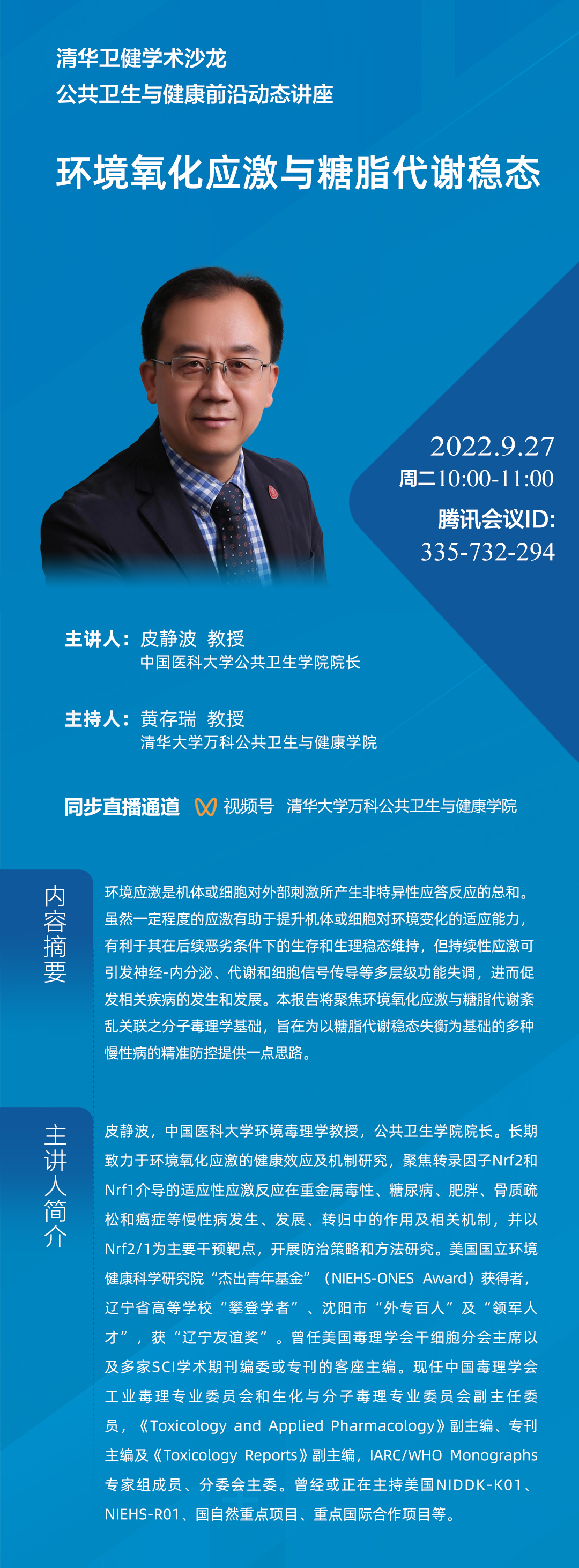 【前沿动态讲座】皮静波:环境氧化应激与糖脂代谢稳态